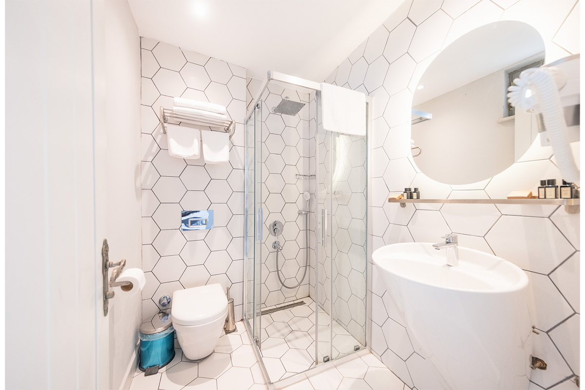 Modern çizgilerle döşenmiş odada çift kişilik yatak, klima, minibar, ücretsiz Wi-Fi, saç kurutma makinesi ve banyo malzemeleri gibi tüm temel olanaklar yer alır.